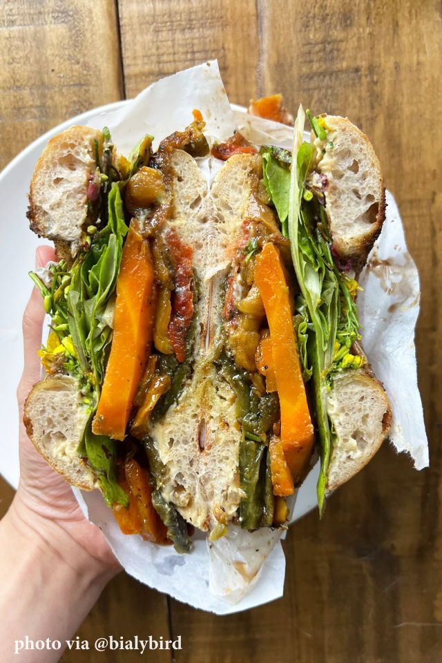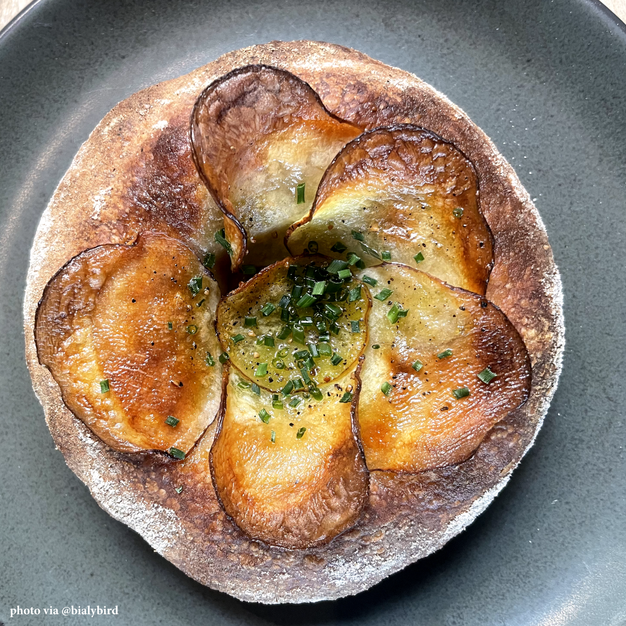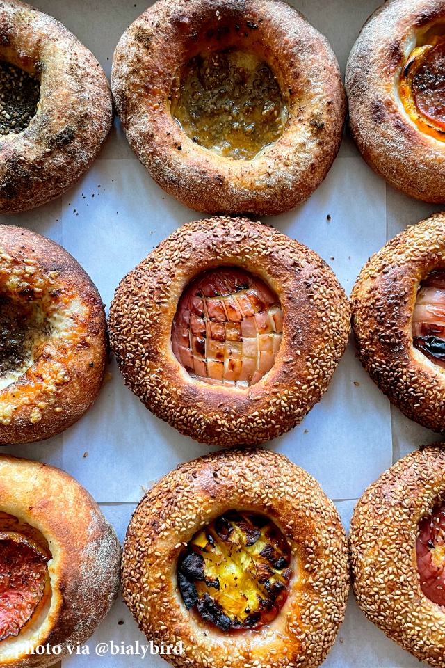 Inspired by global culinary traditions and garden-grown, hyper seasonal produce, Bialy Bird’s new school bialys are rapidly becoming one of Portland’s cult-favorite breakfast items. Adam Thompson spent decades in the restaurant industry before launching his weekly pop-up, and his cheffy bonafides come through in flavors like cacio e pepe, black tahini with chili crisp, and miso-onion.