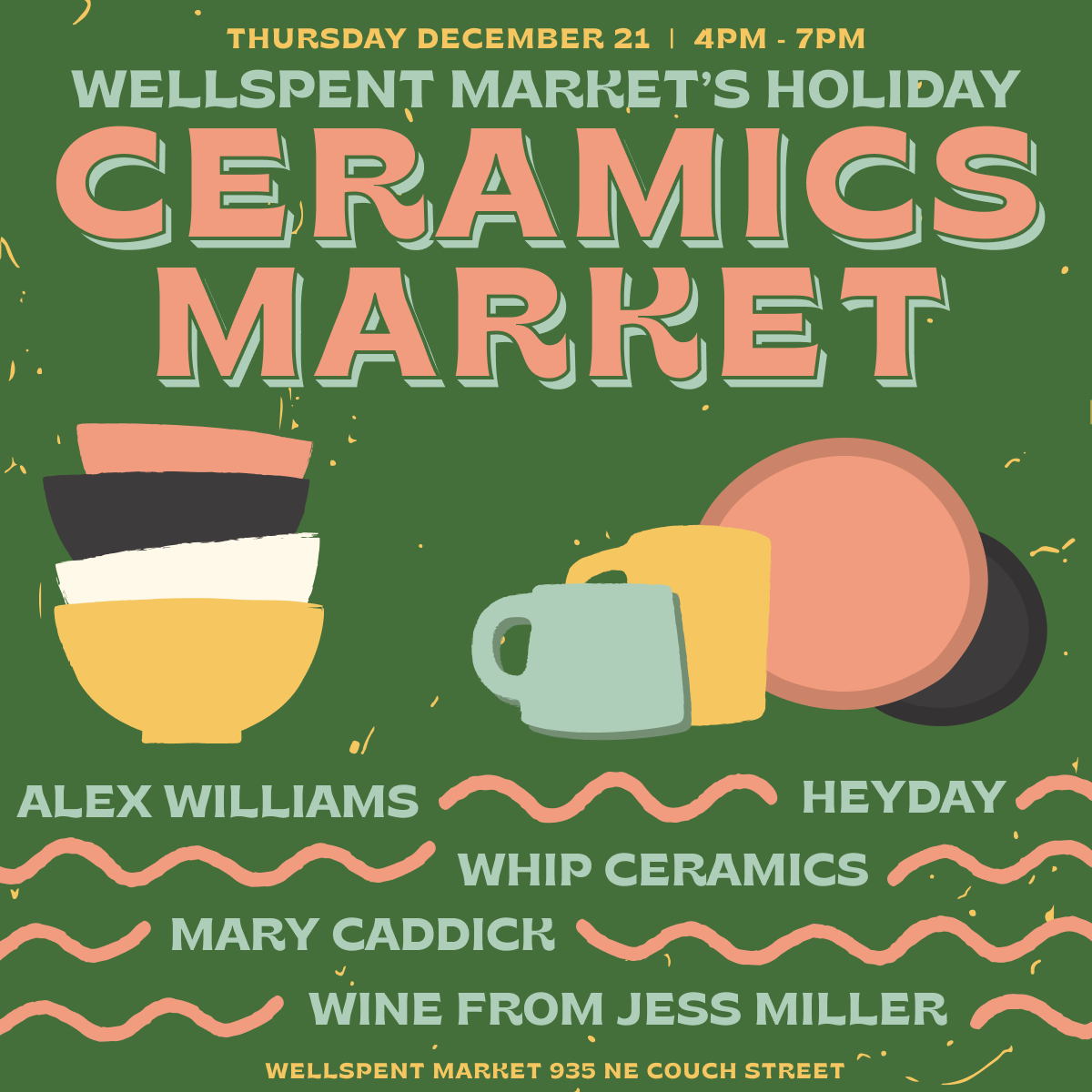 On Thursday, December 21st we’re hosting a small maker’s fair featuring some of our favorite local ceramicists. Come shop handmade pieces from Alex Williams, Hana Rucker, & Mary Caddick, alongside a selection of vintage items from Heyday. It’s going down from 4-7pm, and Jess Miller will be pouring wine to sip while you shop!
