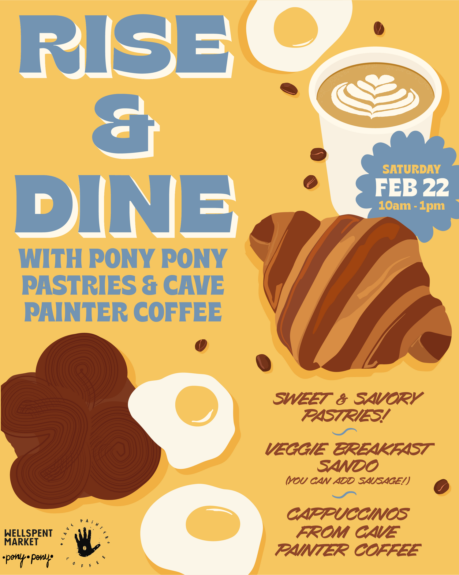 Mark your calendars! Pony Pony Pastries, the beloved Farmers Market staple from Kristen Napoleoni, is bringing the goods to our Portland shop on Saturday, February 22nd along with special guest Cave Painter Coffee! Swing by from 10am-1pm to grab one of their famous breakfast sandos (veg options included!), perfectly flaky pastries, and eye-opening cappuccinos. Come hungry—you won’t want to miss this!