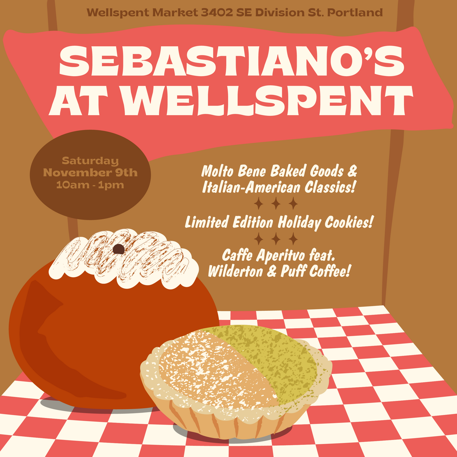 Dan & Elise, the dynamic duo behind Sellwood’s best Sicilian bakery–AKA Sebastiano’s–are popping up at our Portland shop to celebrate the Wellspent x Sebastiano’s Pastry Partnership! They’re bringing up an assortment of all-time classics, event-only specials, and limited holiday offerings PLUS, we’re partnering with Wilderton and Puff Coffee for a couple of special caffeinated cocktails (available with or without alcohol, natch) to help you get your weekend started on the right foot. See you there!