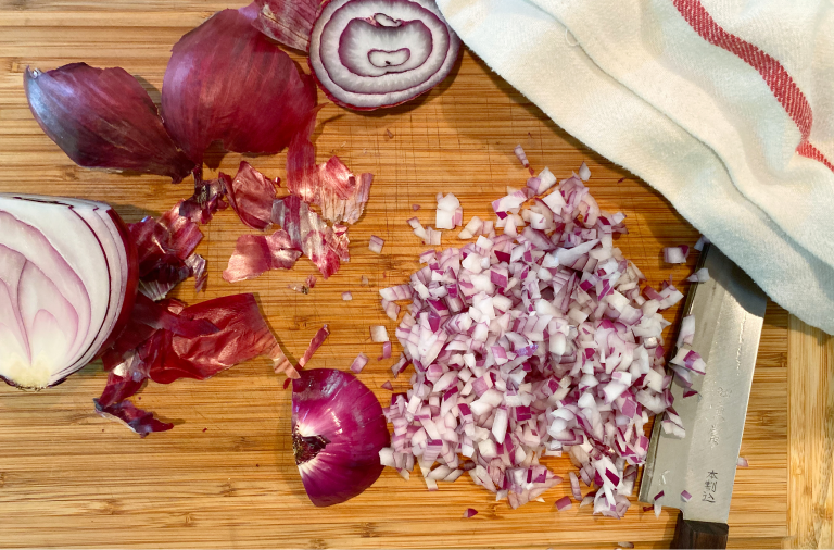 Cook the onion in the olive oil with a pinch of salt for about 5 minutes.