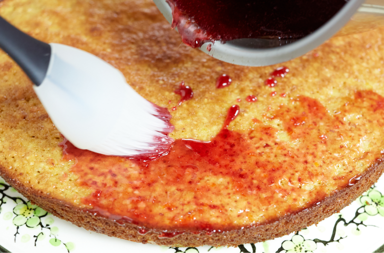 Run a knife around the edge of the cake and carefully invert it onto a plate or, even better, a rimless baking sheet. Use another plate to invert again onto a nice plate so it’s right side up. Gently brush the warm glaze over the top of the cake and let cool.