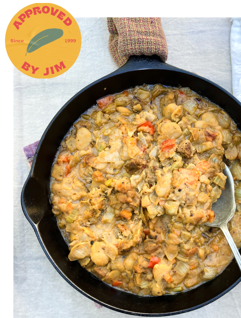 Long, slow cooking makes the big beans creamy and especially tasty, and a little smoky sausage adds more flavor.