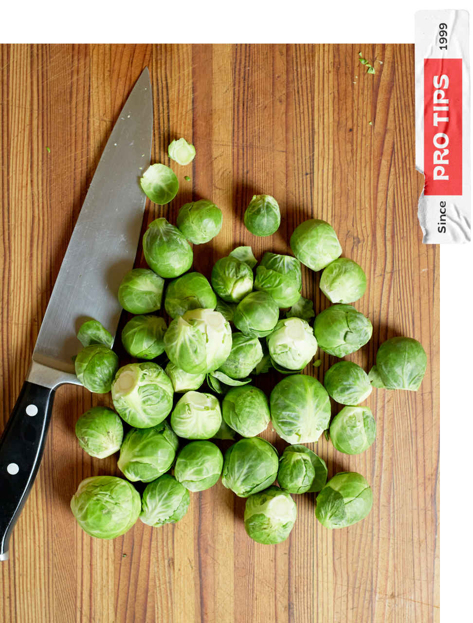 If you can find Brussels sprouts on the stalk, grab them. They’re always fresher and usually cheaper than the loose or bagged sprouts.