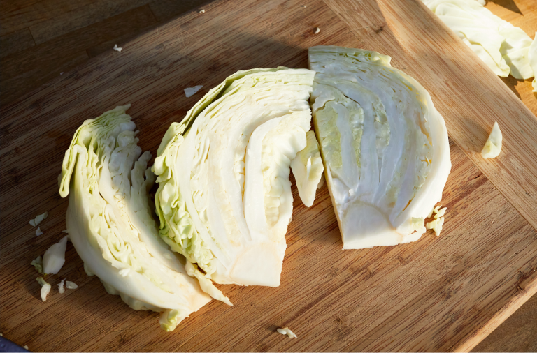 Cut cabbage into wedges, about 6 wedges per half cabbage.