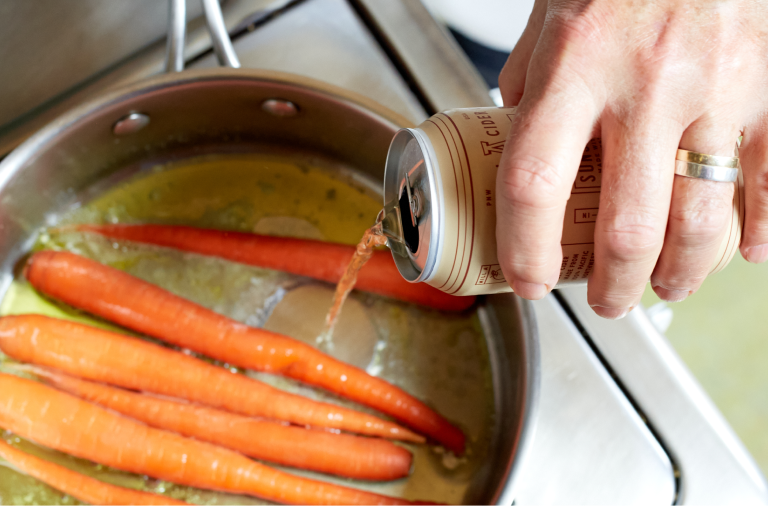 grew fruit for making hard cider, a drink safer than water in those days. Old recipes using cider for cooking go back to the 1800s, when it was used for the same reason. While our water may be cleaner these days, using hard cider adds a subtle, fruity flavor to these simple braised carrots.