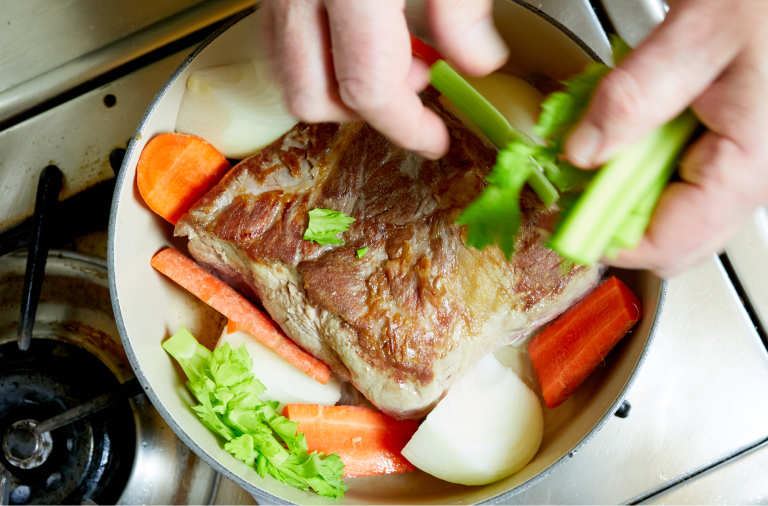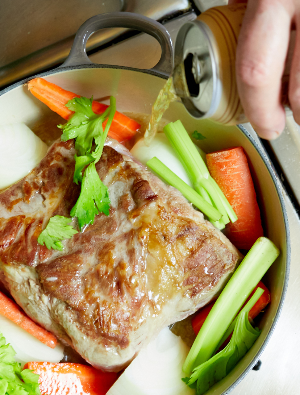 If you prefer a thicker gravy, combine 3 tablespoons of flour with enough cold water to make a paste. Stir that into the braising liquid, bring to a boil, and cook until it thickens.