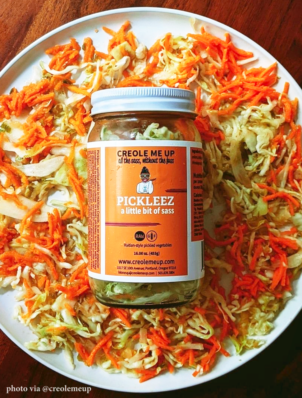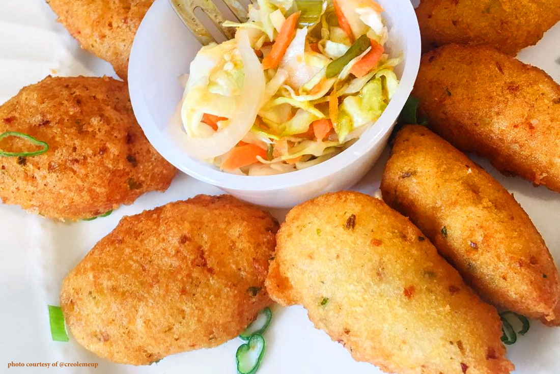 Step 4 — Add the rest of the oil to the skillet and heat. Carefully slide spoonfuls of the akra batter to the oil a few at a time; don’t crowd the pan. Cook for a few minutes, gently flip, and cook a few minutes longer until nicely browned. Garnish with the chopped parsley or chopped green onions. Enjoy alongside Creole Me Up's Pickleez!