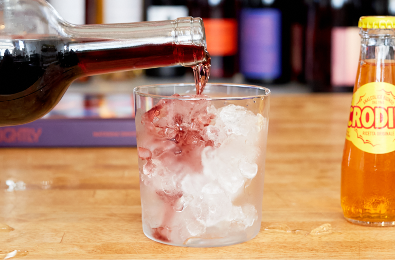Add 3oz vermouth, 2oz Crodino, and top with soda water.