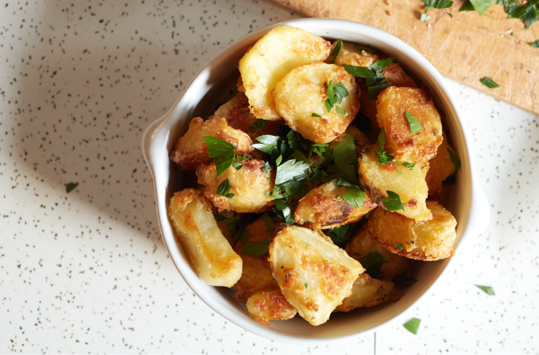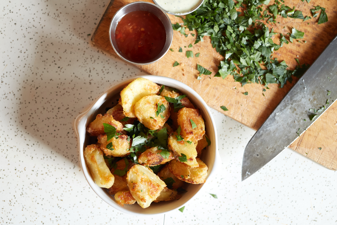 the Sunday Roast, a traditional British meal served throughout the commonwealth countries. The Brits are serious about their “roasties,” and recipes for classic English-style roasted potatoes vary widely; this approach, adapted from a technique developed by J. Kenji Lopez-Alt, applies modern science to an age-old recipe to achieve maximum crispness. Ambitious? Maybe. Delicious? Absolutely.