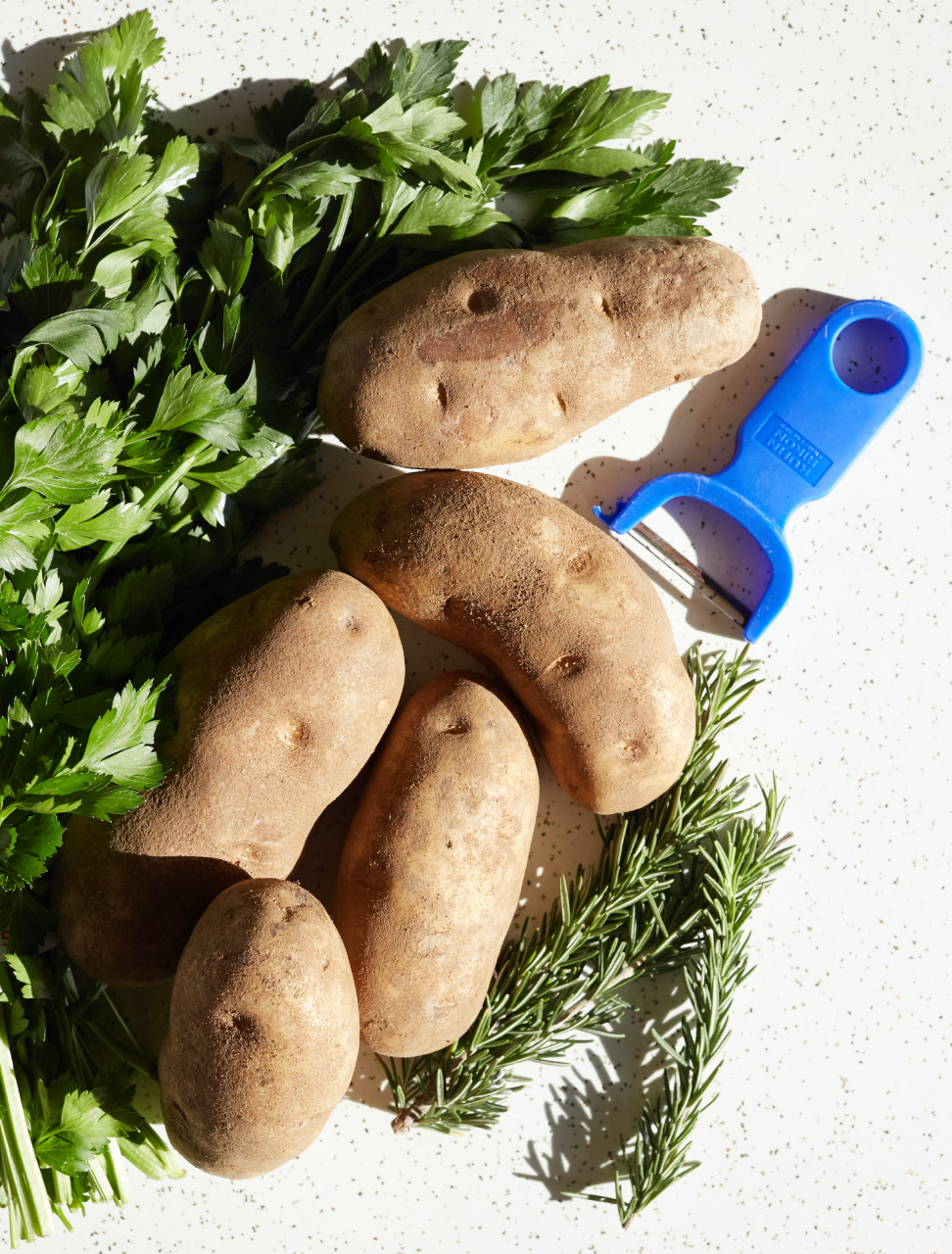 - 4 pounds of Russet or Yukon Gold Potatoes, peeled and cut into good size chunks (for a large Russet, think 6-8 pieces: cut in half crosswise, then quarter each half)