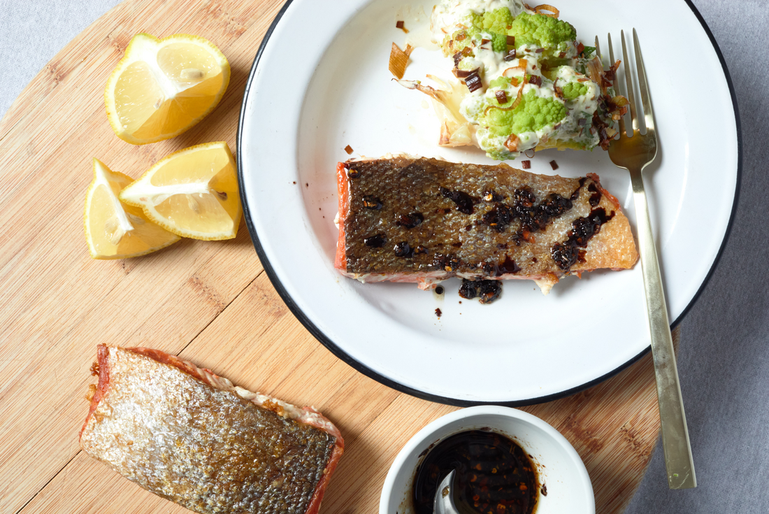 who literally grew up in kitchens (her mother runs Portland’s legendary first-wave Thai restaurant Khun Pic's Bahn Thai). It’s one for all of you salmon skin lovers (we’re not tossing this insanely crispy skin to the pups; apologies to all the good boys out there). The key is letting the salmon rest uncovered in the fridge for at least an hour (overnight if you can manage it), which pulls moisture from the skin and allows it to achieve peak crunchy-crispiness. Top it all off with Lauren’s easy pan sauce, and serve alongside seasonal vegetables (we love it with our Whole Roasted Romanesco).