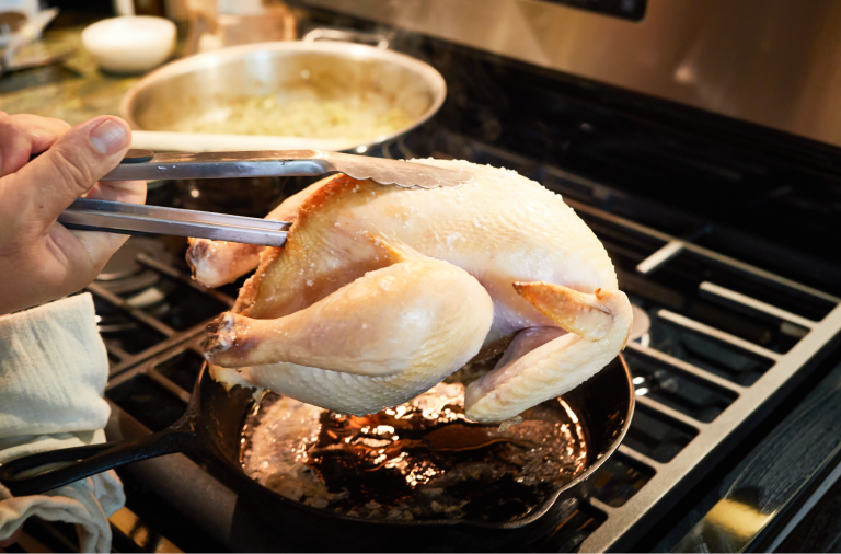 This simple method delivers every time, offering crispy, golden skin, juicy meat, and effortless leftovers that we turn into soups, hearty salads or pot pie. Plus, it’s dead simple: all you need is a cast iron pan.