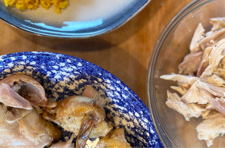 For about $8 it's an affordably delicious meal in a notoriously expensive city. After our last trip to New York and a few sidewalk dinners of chicken and rice, I wanted to make it at home. I started with the leftovers from a roasted chicken.