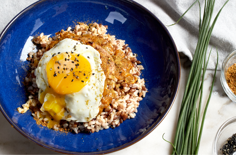 While most hambagu comes on a mound of rice, we like to acknowledge another Japanese tradition by adding barley.