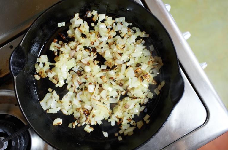 Cook the onion in 1 tablespoons of olive oil with a pinch of sea salt until soft and lightly browned, about 10 minutes. Set aside half for the Hambagu.