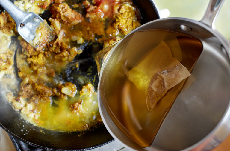Add 1 tablespoon of miso, 1 tablespoon of ketchup, and 1 tablespoon of tamari, stir to combine, then add 2 cups of prepared dashi. Bring to a boil, reduce heat, and simmer for 5 minutes or until thick. Taste and add salt if needed.