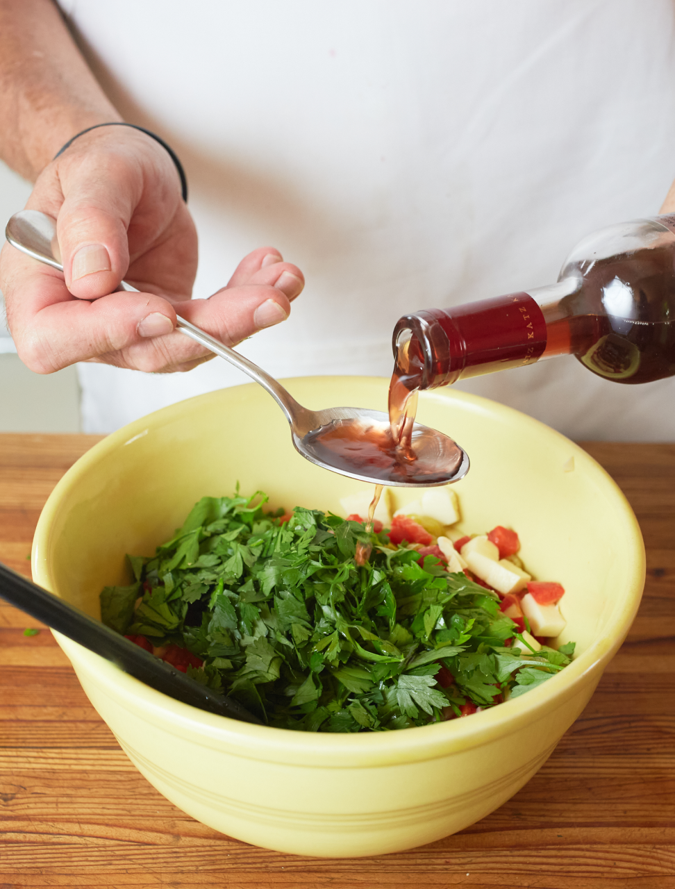 - Large handful of flat-leaf parsley, mint, or a combination, chopped