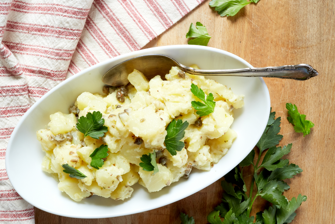 Legendary cookbook author Marcella Hazan wrote that Italians judge a home cook by their potato salad, noting that there’s no “mystery about what goes into it: It’s just potatoes, salt, olive oil, and vinegar.” While an ocean of mayo can cover the mediocre potatoes and celery of the American version, a stripped down Italian potato salad can’t hide behind it. As Hazan wrote, it’s all about the potatoes.