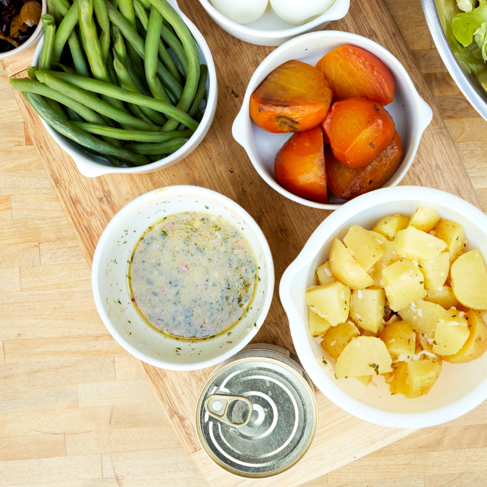when turning on the oven feels nearly impossible, the Nicoise Salad is one we keep on regular rotation during summer at Wellspent HQ. There is some cooking involved, but it’s really just boiling eggs and potatoes (and roasting beets). We like to do all the hot prep in the morning; the house is still cool, and dinner comes together rather quickly at the end of day.