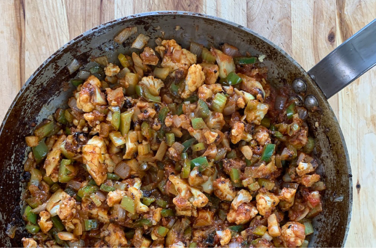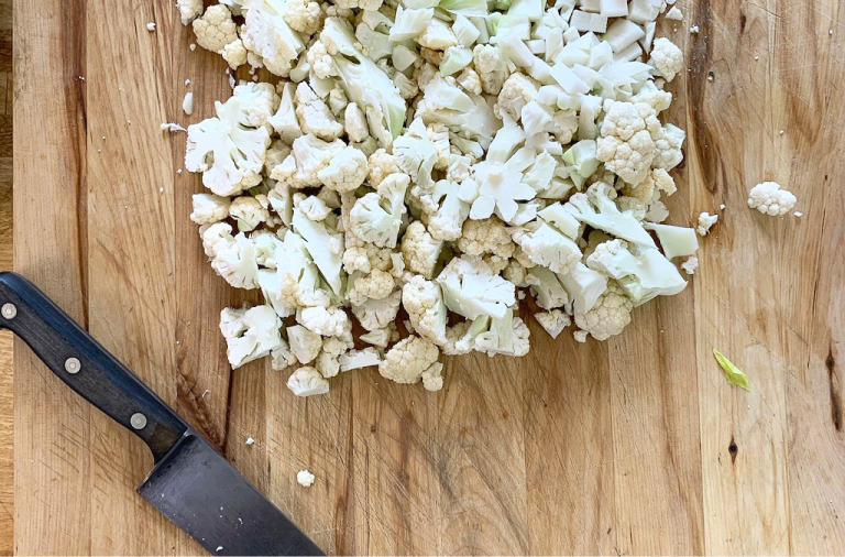 and a couple of cloves of garlic. Add them to the cauliflower and cook