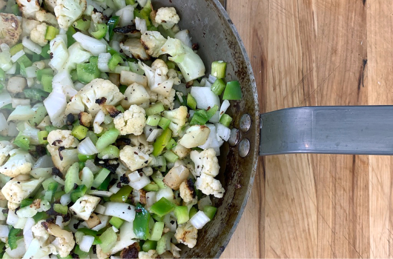 and black pepper in a heavy skillet on medium high for about 15 minutes or until the cauliflower is nicely browned.