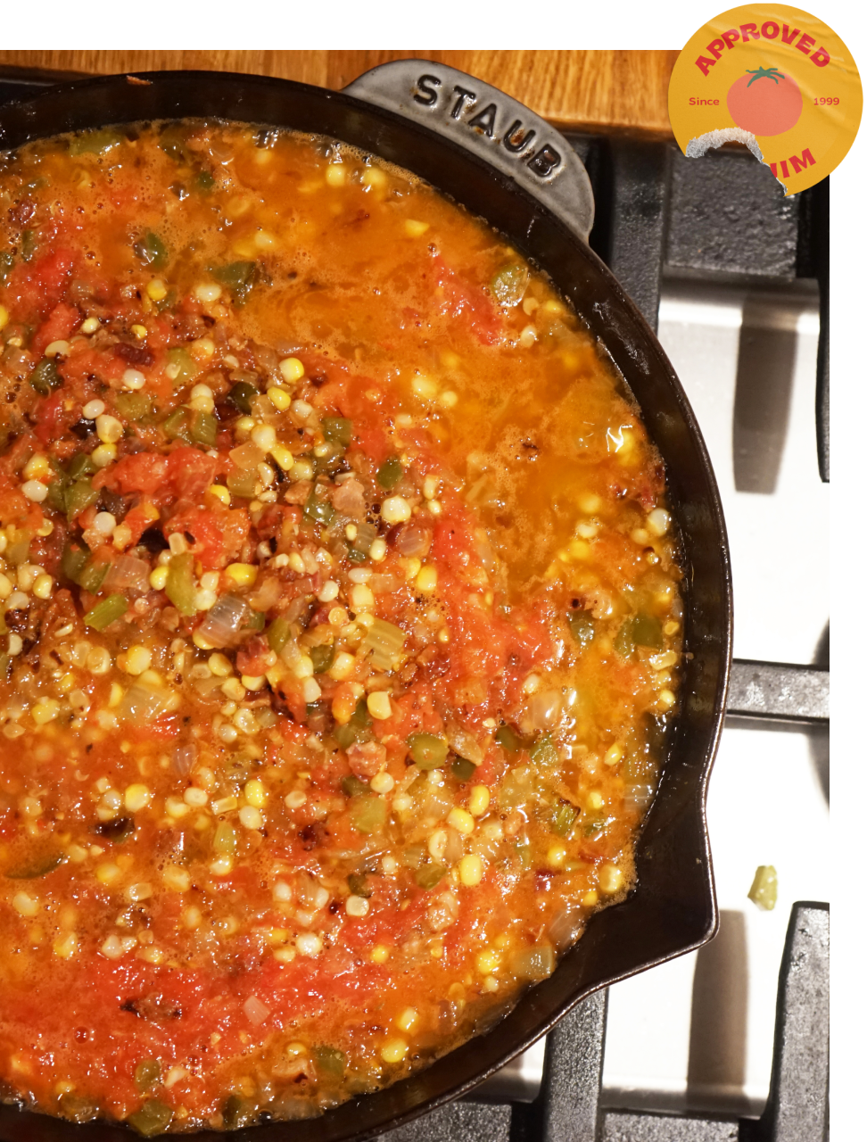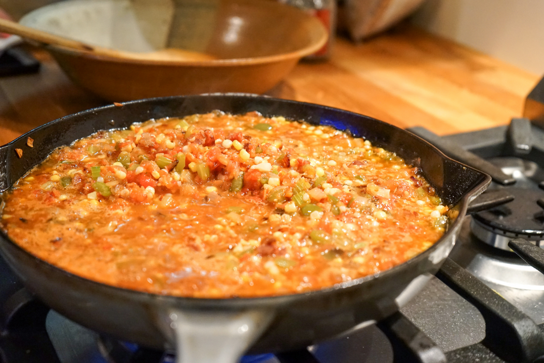 Culinary historians think this Louisiana classic that combines New World vegetables with Old World technique comes from the native American influence on the French Acadians expelled from Nova Scotia. Even withoutthe interesting backstory, maque choux (pronounced "mock shoe") is delicious.