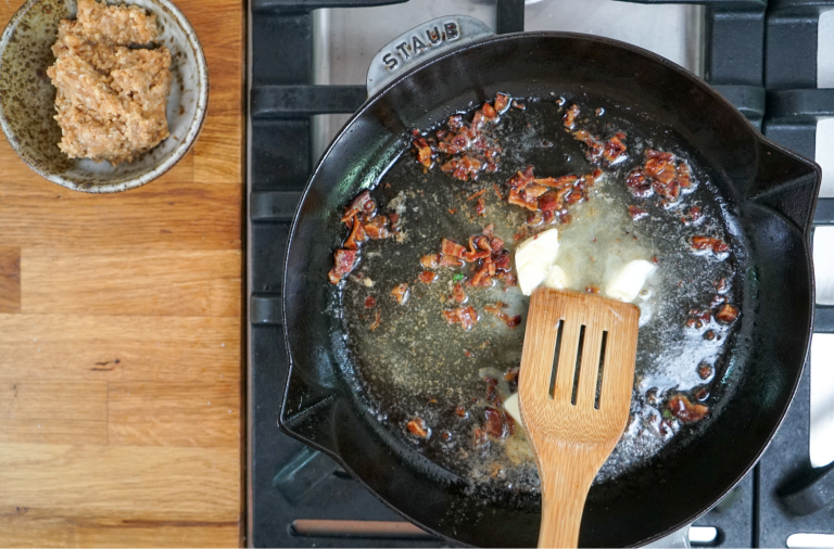 While this version includes bacon, smoky andouille sausage or tasso ham are fine meaty substitutes. A handful of Louisiana dried shrimp would also be a tasty if unorthodox addition. Or you can make it with just vegetables.