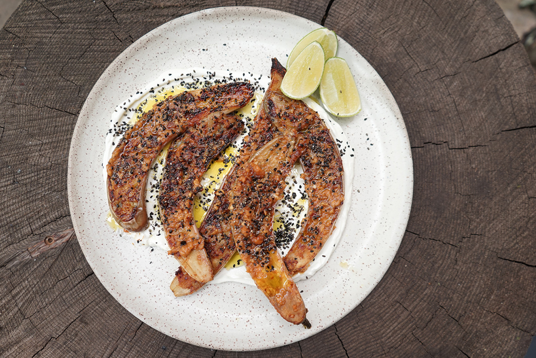 Miso-Roasted Eggplant with Garlicky Yogurt