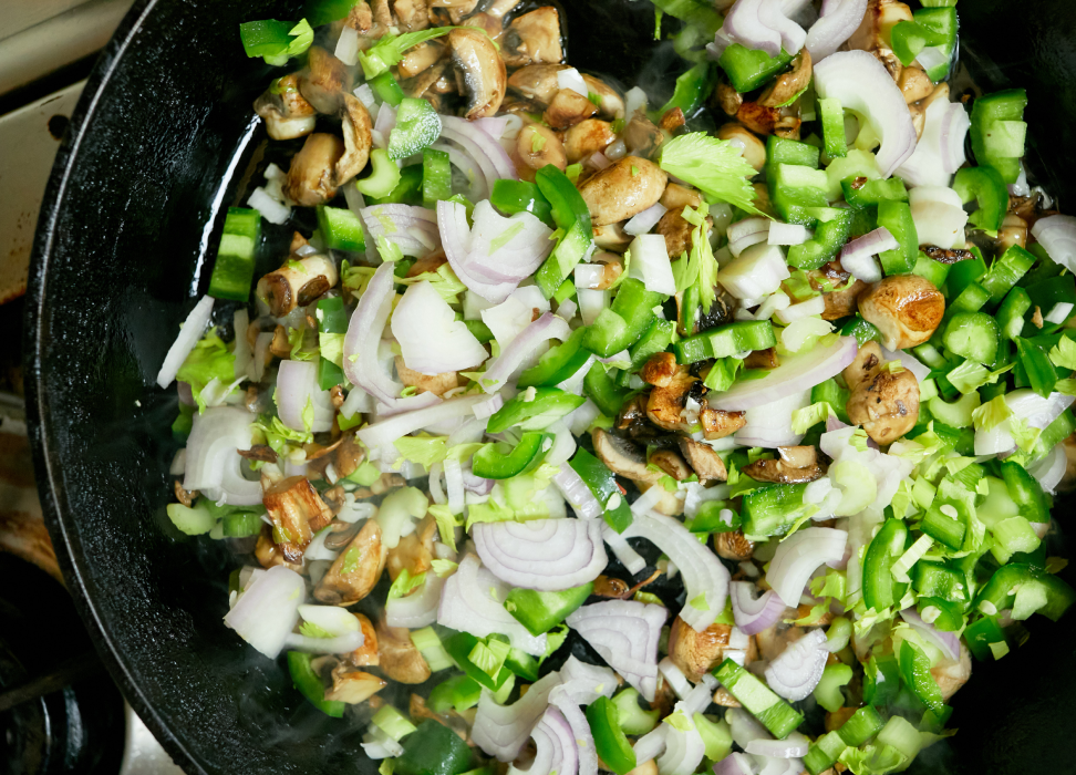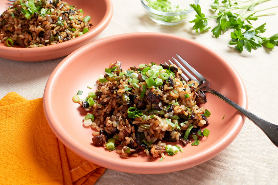 the specks of chicken liver and gizzards originally used to make the jambalaya adjacent dish. Sometimes called rice dressing, it’s evolved, and these days is more likely to be made with ground beef or pork instead of offal. But you can skip the meat altogether and use mushrooms to make a tasty, highly seasoned, brown-flecked side dish.