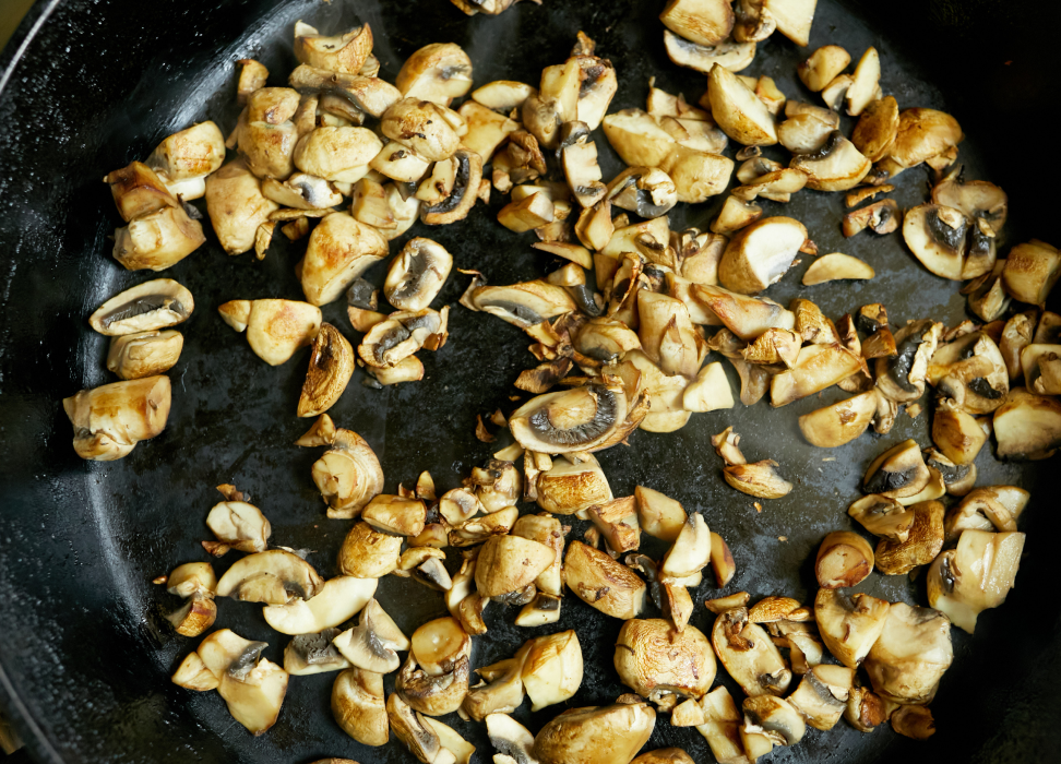 As with most mushroom-based dishes, we like to start with the dry sauté, a mushroom cooking technique that concentrates their umami-filled flavor. The mushrooms cook in a hot skillet without any added fat until they give up most of their water, then olive oil and the other ingredients are added.
