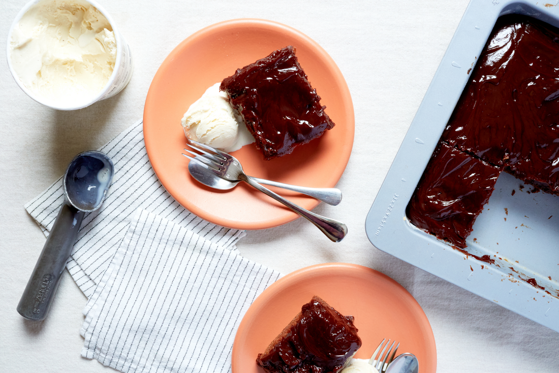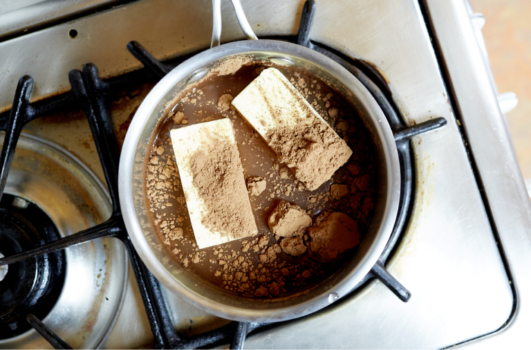 The frosting is a mystery. While you can find lots of recipes for Richmond frosting, none offer any explanation for the name. I’ve seen it in Amish cookbooks and some speculate that it may be a relic from wartime when sugar, especially the powdered sugar typically used for cake frosting, was in short supply. Maybe a cook in Virginia popularized the shiny dark frosting that also uses a boiling water technique. It doesn’t really matter; what does is that it’s delicious and, since it’s pourable while warm, the frosting self-levels after it’s scraped out of the saucepan onto the sheet cake.