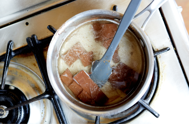 In a small saucepan, heat 1 1/2 cups water and 3oz chocolate, stirring constantly until the chocolate is melted.