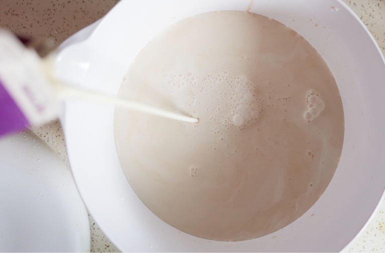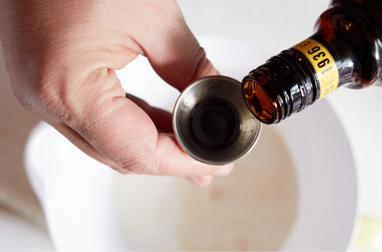 In a separate container, combine 5oz Tia Maria, 2.5oz Old Grandad Bourbon, 2.5oz California Brandy with 3 1/4 cups half & half.