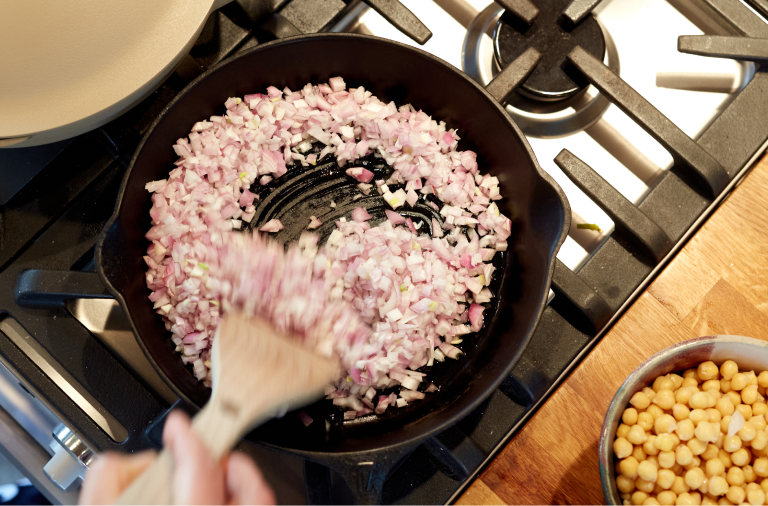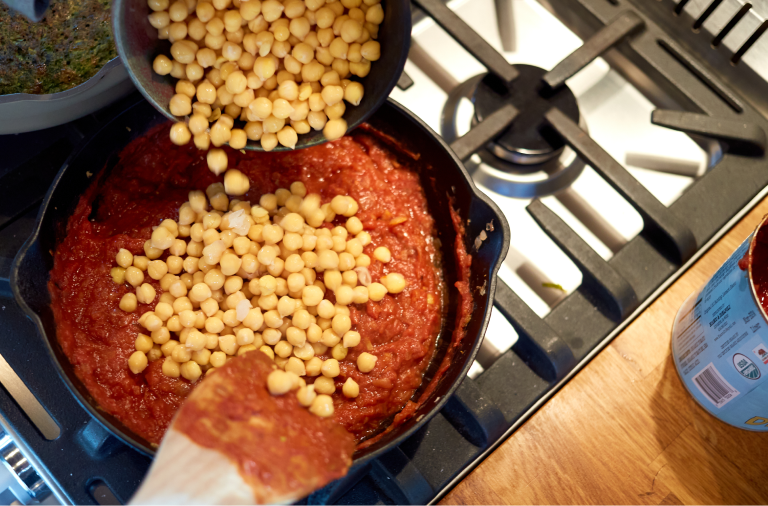 Cook for a few minutes, then add the 3 cups of cooked chickpeas and cook until warmed through.
