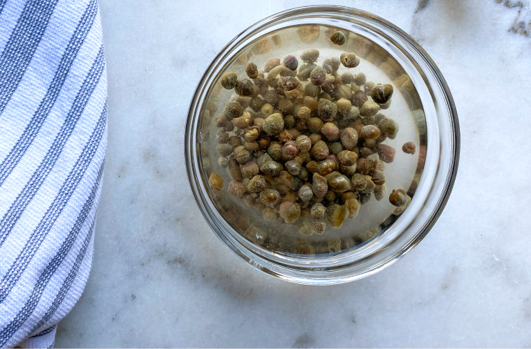 Soak the capers in cold water for about 20 minutes, drain, and pat dry with a clean dish towel.