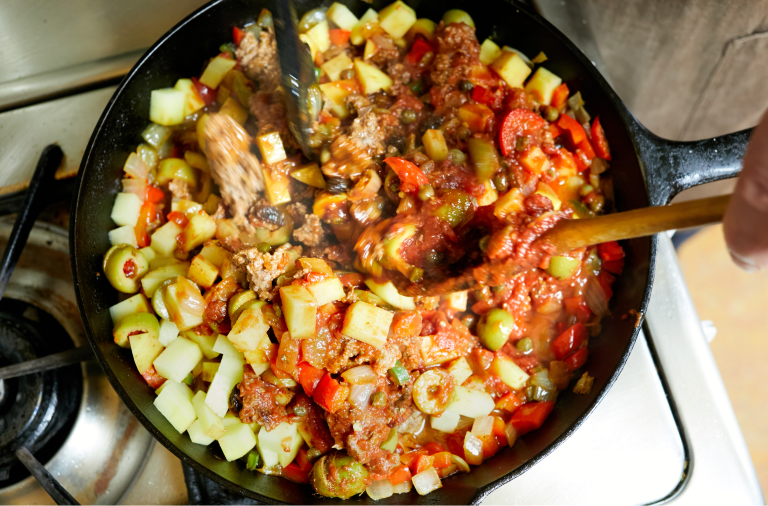 picadillo evolved to become an essential element of the cultural identity for Cubans, Mexicans, Filipinos, and other survivors of the former colonial empire. It’s quick and relatively easy to make from everyday ingredients, but the complex, layered flavors make it feel a little extravagant.