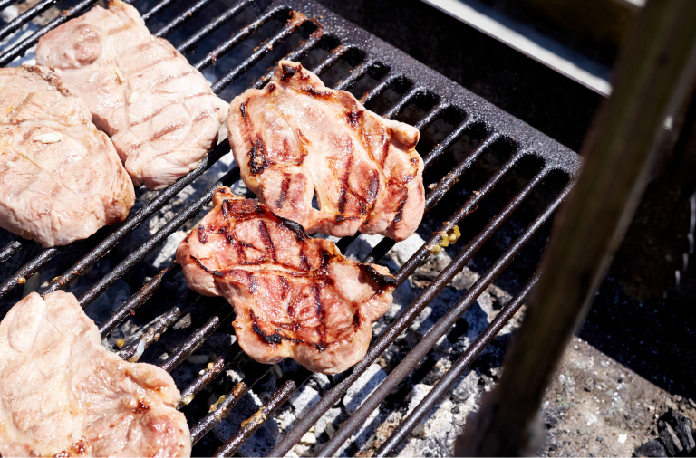 Grill the pork over direct heat until nicely browned and cooked through, about 4-5 minutes per side.