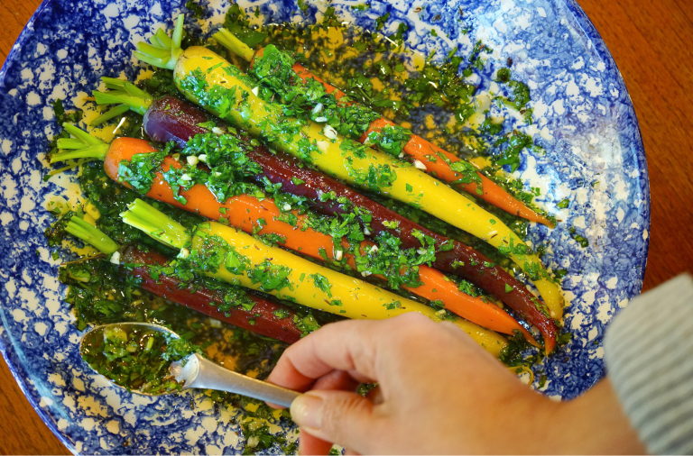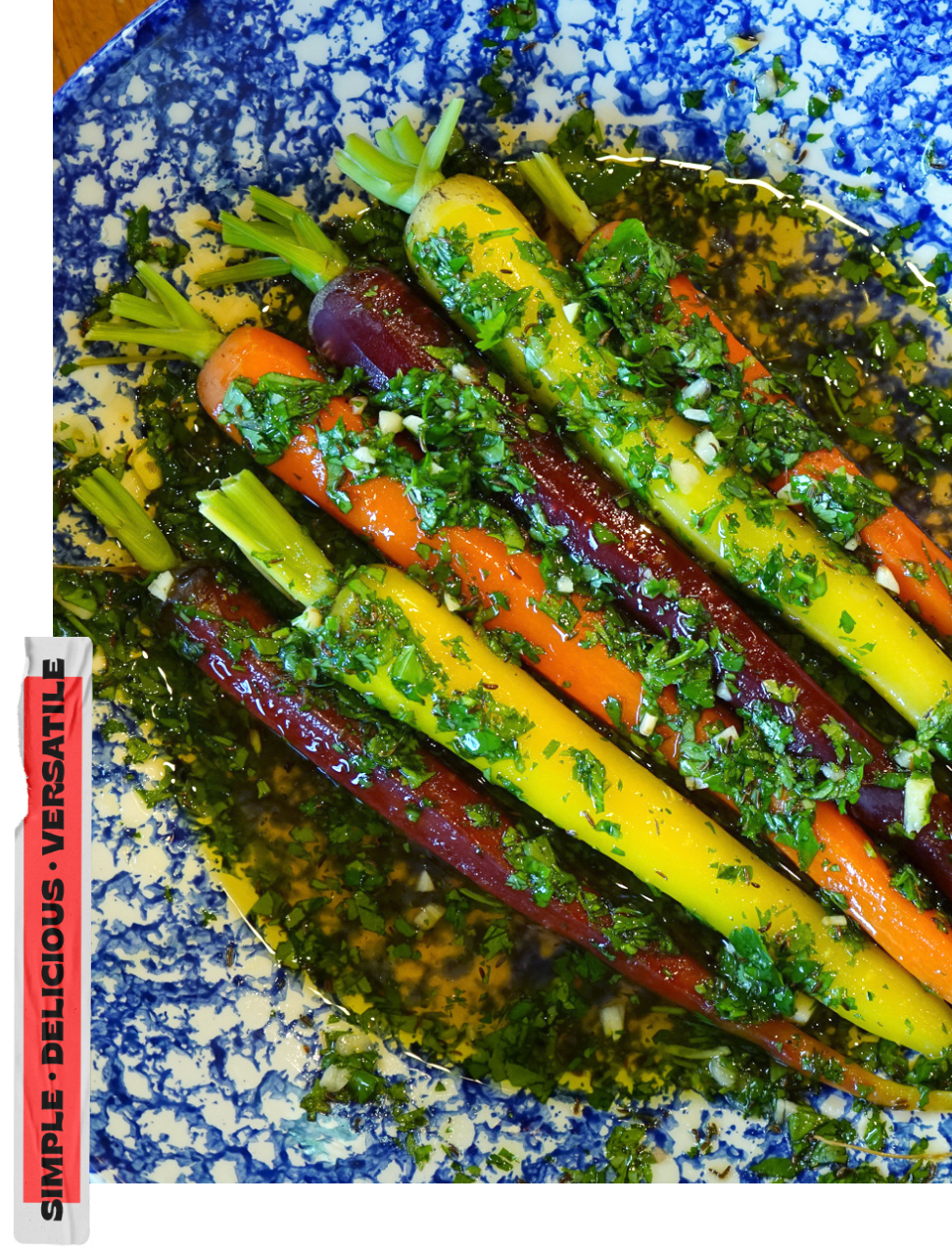 It’s quick and easy to make: just cut up and boil the carrots, then toss them in a simple marinade.