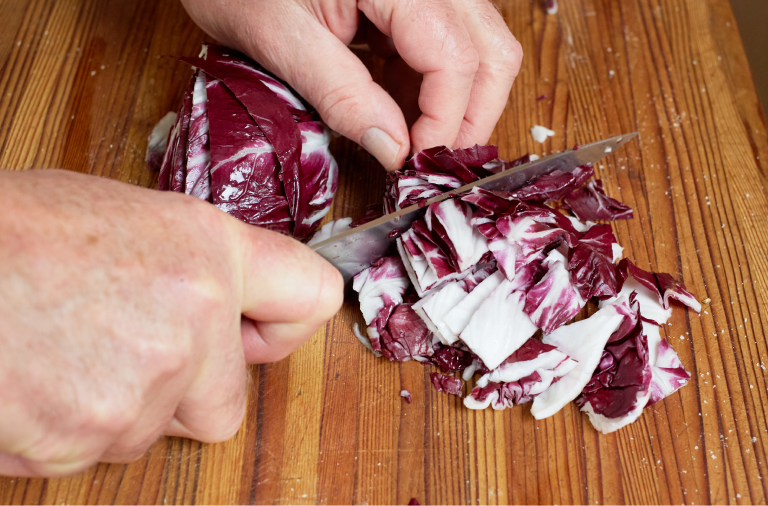 If you can only get the round Chioggia variety, use this restaurant trick to temper its bitter flavor: cut the leaves and soak them in cold water for at least 30 minutes.