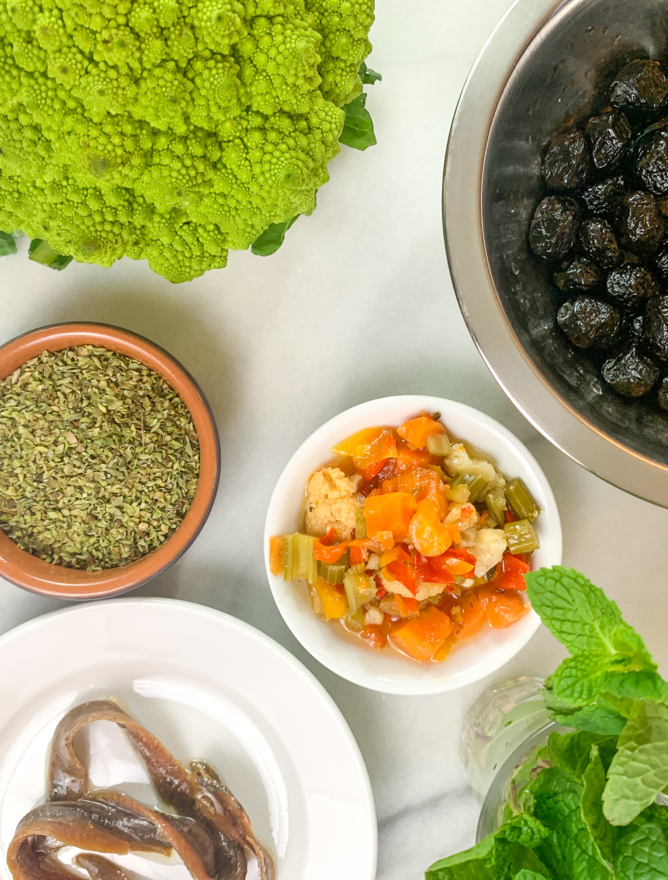 with more cauliflower and the addition of pantry staples like olives, capers, and anchovies.