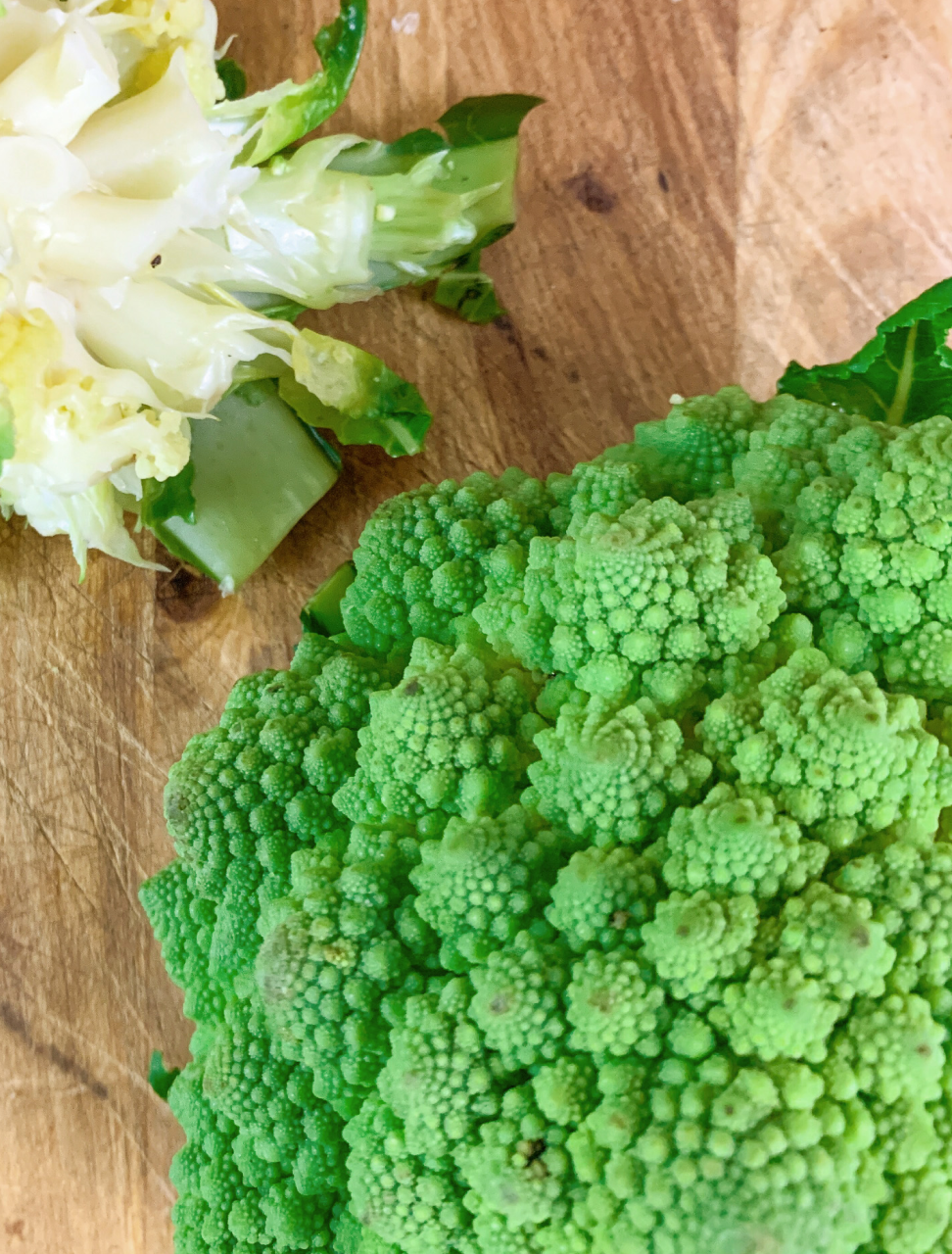 and I like to preserve the shapes when I serve this striking member of the cabbage family. It's often called a cauliflower, but the flavor is a bit more delicate."