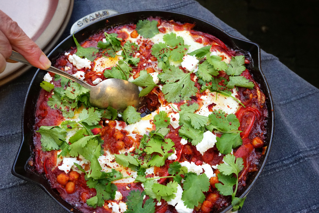 Shakshuka with Garbanzos & Feta