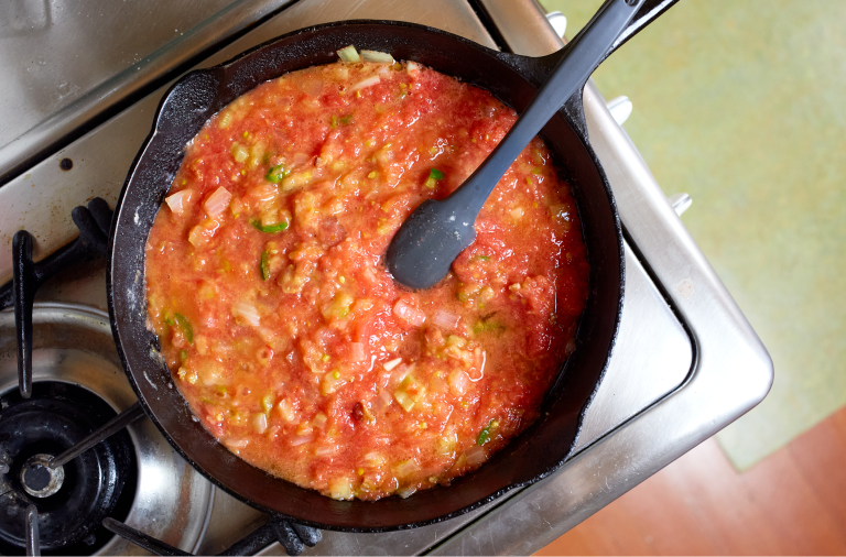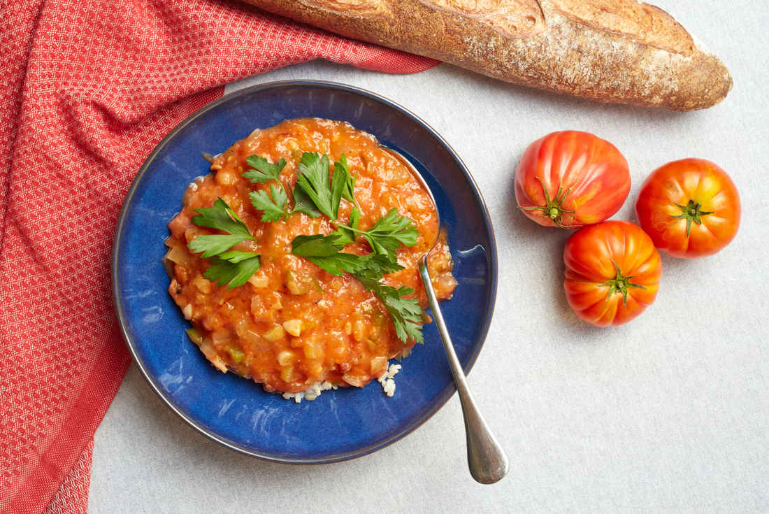 Historically made with the flour-thickened drippings from cooked meat, gravy offers some extra flavor from a handful of pantry ingredients. In Appalachia tomato gravy usually started with a dollop of bacon grease from a can on the back of the stove. It made simple foods like cornbread or biscuits taste better. Our version gets even more flavor with the non-traditional addition of celery and jalapeño.