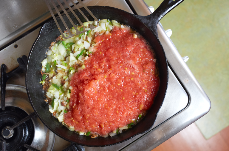 - *you can use just bacon fat or olive oil; substitute about 2 cups of canned, crushed tomatoes