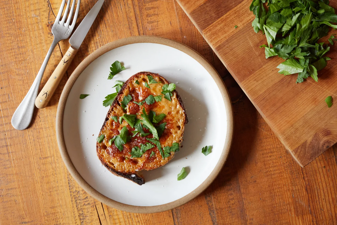 about the possible origins of what is, at its core, cheese on toast. Welsh Rarebit’s decidedly murky history notwithstanding, we can say one thing with certainty: it is very delicious. This version tweaks a recipe found in The Complete Nose to Tail, acclaimed chef Fergus Henderson’s ode to rustic British cookery, and includes freshly ground mustard seed, hot sauce, and liquid shio koji (the koji is especially unorthodox, but adds crucial depth and umami).