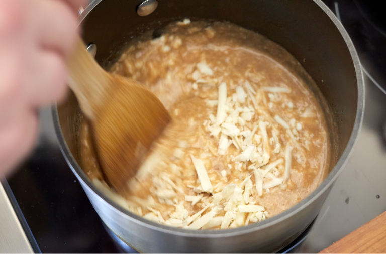 Gently melt in the grated cheese.
