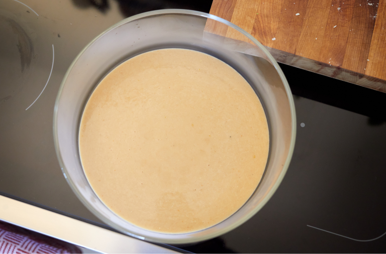 When the sauce is a uniform consistency, transfer to a shallow container and place in the refrigerator to set.