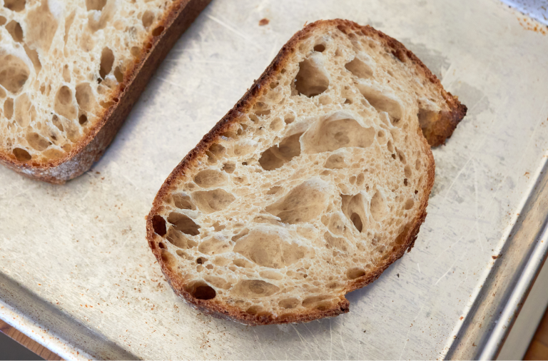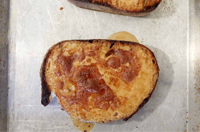 Place bread on a sheet pan and cook under a high broiler until brown and bubbling.