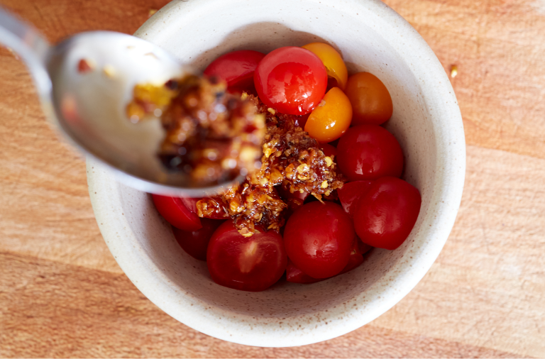 Afterall, you’re reading this on a website put together by a bunch of over-40-year-olds, and we first stumbled across the “recipe” in a Bon Appetit feature about social-media food trends. That said, this recipe is so good and so simple, we think it’ll outlive any flash-in-the-pan trend status, living forever in our rolodex of quick and easy dishes that we love to eat. It’s adaptable too: here, we’re using Chile Crunch made by Susie Hojel in Colorado, but you can use any brand you like. Chili crisp seems to have permanently entered the American pantry, and there are a ton of brands out there making their own spin on the crunchy, spicy condiment. That’s quite the introduction for a two-ingredient recipe, so we’ll stop here and let the food do the rest of the talking.